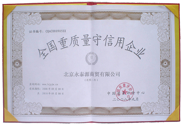 上一篇:全國(guó)重質(zhì)量守信用企業(yè)(銅牌)